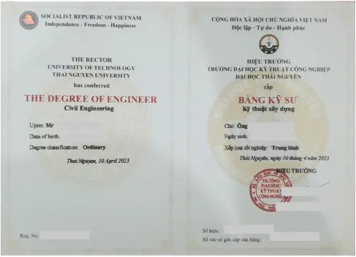 - Bằng kỹ sư / cử nhân do Bộ Giáo dục và đào tạo công nhận